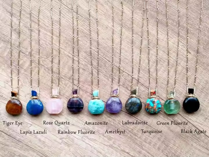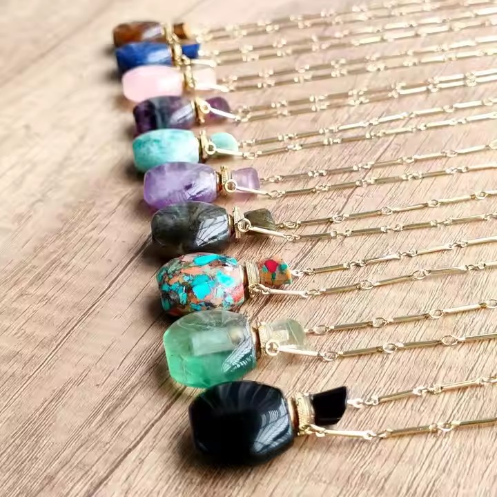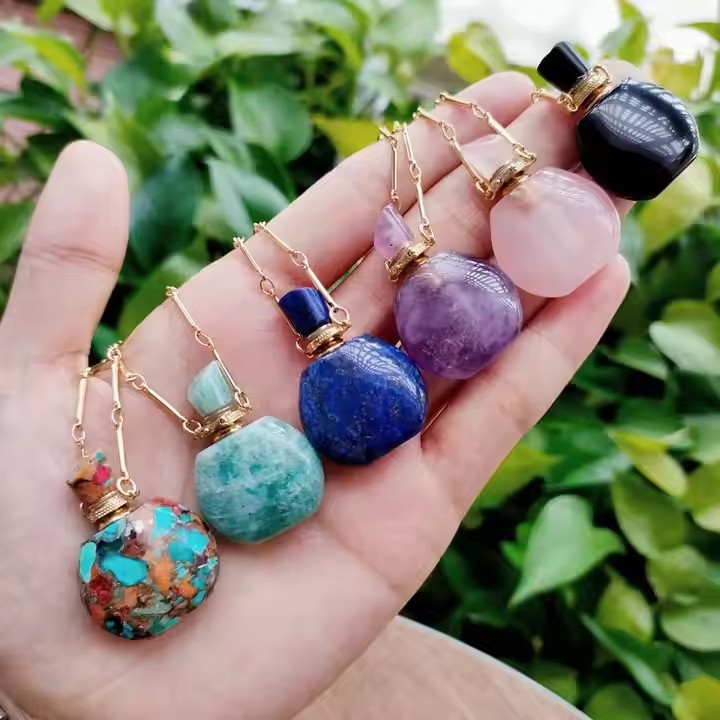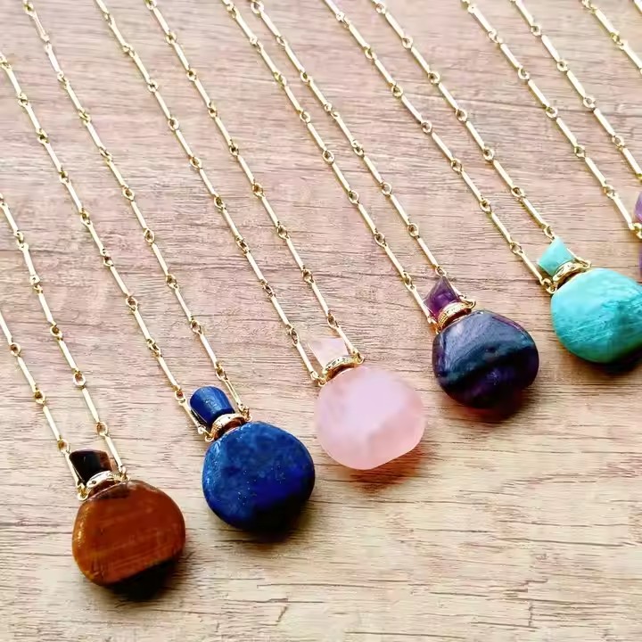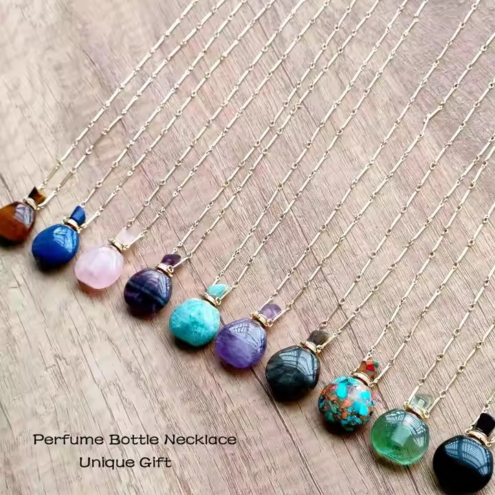 / Classic Perfume Bottle Pendant Necklace Natural Crystal Essential Oil Bottle Necklace Healing Crystal Vial Necklace