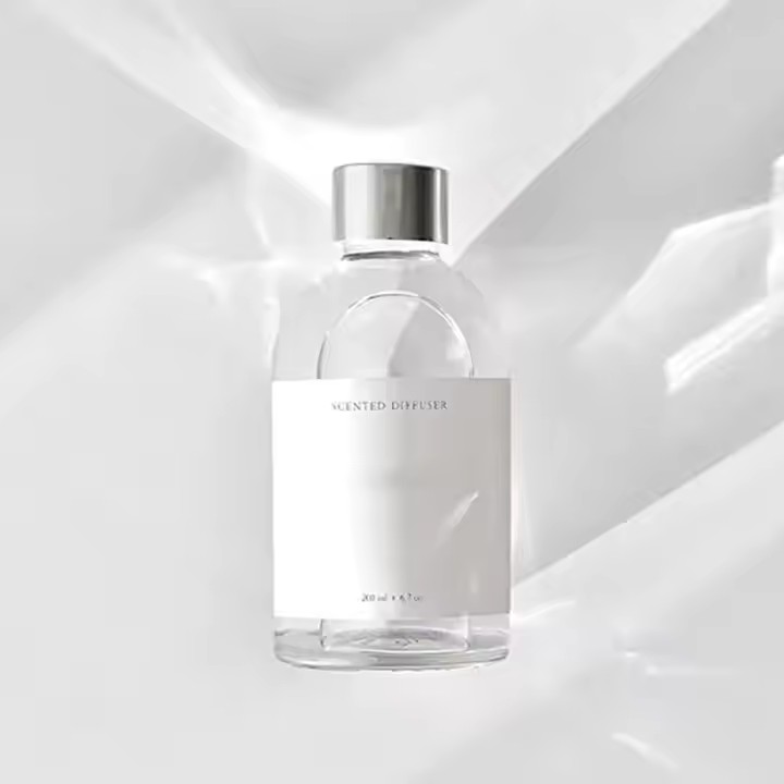 / Factory 200ml Home Clear Round Luxury Perfume Aroma Glass Reed Diffuser Bottle With Screw Cap